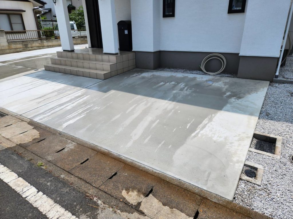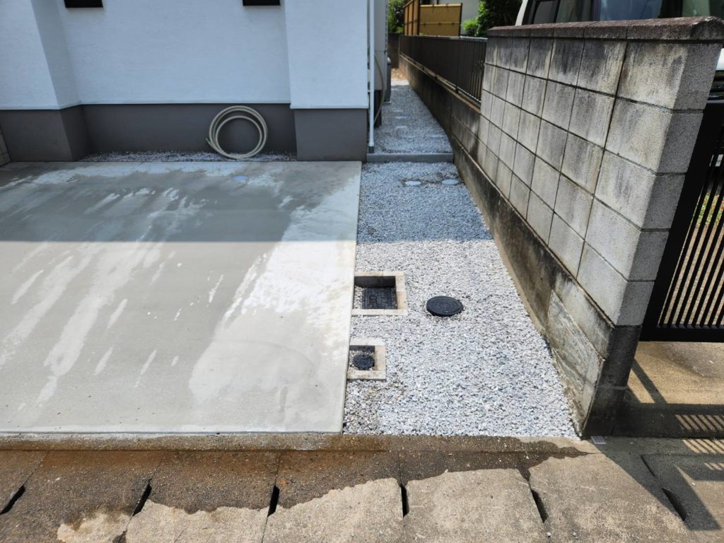 戸建住宅の土のお庭をコンクリートに舗装する外構工事を行いました。雑草対策になり日々のお手入れが大幅に楽になります。雨の日でもぬかるまず、歩きやすく清潔に保てるのも大きなメリットです。駐車場やテラスなど、使い方の幅が広がり実用性がぐっと高まります。