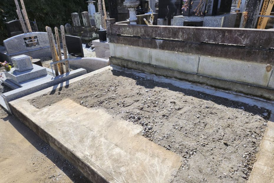 ご遺骨を新しい方法で供養した後、墓じまいをしました。墓石を解体し、基礎を含めて更地にして墓地を返還します。無縁墓になる心配がなくなり、継承者様の負担を減らすことができました。